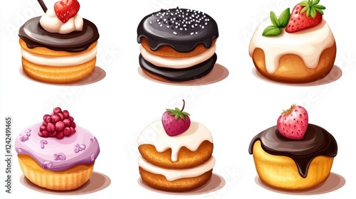 Delicious Assortment of Colorful Cartoon Cupcakes and Treats