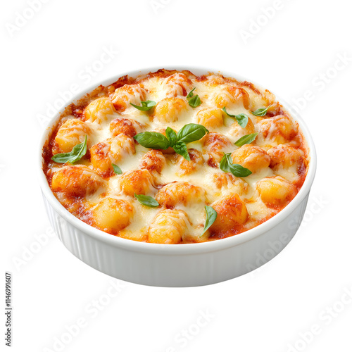Delicious Baked gnocchi with cheese Isolated On Transparent Background