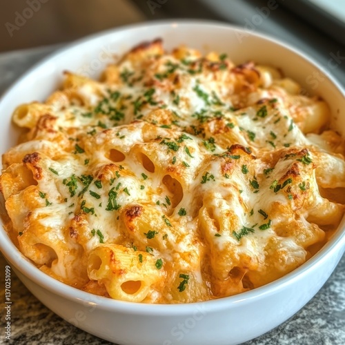 Delicious baked rigatoni pasta with creamy sauce and melted cheese
