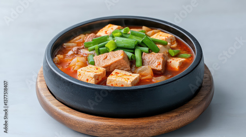 delicious bowl of kimchi stew with tofu and green onions, perfect for comforting meal