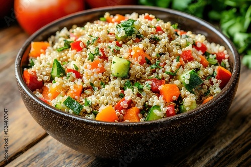Delicious bowl of nutritious rice and colorful vegetables.