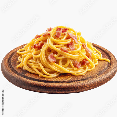 Delicious Carbonara Pasta on Rustic Wooden Board