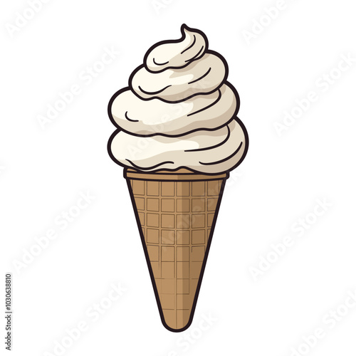 Delicious Cartoon Vanilla Ice Cream Cone in Waffle Cone