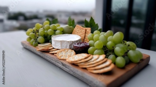 Delicious Cheese Board Brie Cheddar Crackers Grapes Fig Jam
