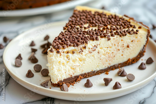 Delicious Chocolate Chip Cheesecake Slice on Modern Plate
