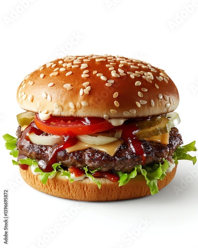 Delicious Classic Hamburger with Beef Patty, Cheese, and Fresh Vegetables