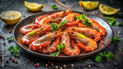 Delicious Cooked Shrimp with Lemon, Long Exposure Photography
