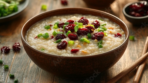 Delicious Cranberry Rice Porridge in a Brown Bowl
