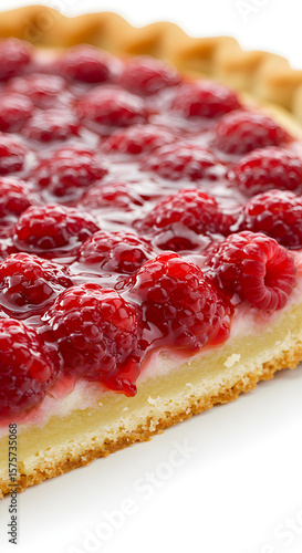 Delicious homemade raspberry cheesecake with fresh berries on a white plate