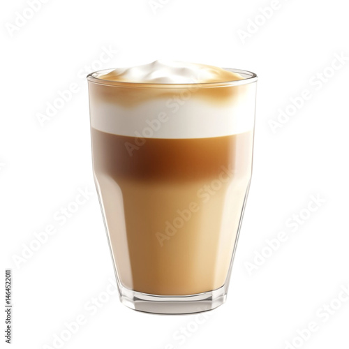Delicious layered coffee drink in a glass creamy foam top espresso and milk