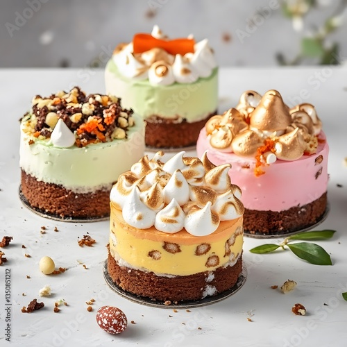 Delicious Mini Cakes Assortment, Pastel Flavors and Meringue Toppings