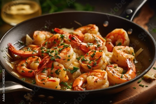 Delicious Pan of Shrimp Scampi (Generative AI)