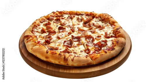 Delicious pepperoni pizza resting on wooden board with transparent background