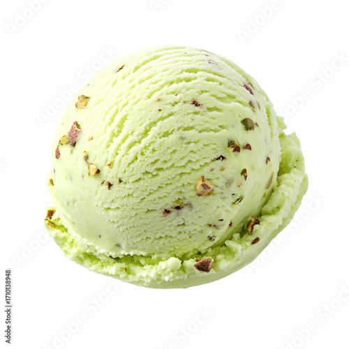 Delicious Pistachio Nut Ice Cream Scoop Isolated on White Background