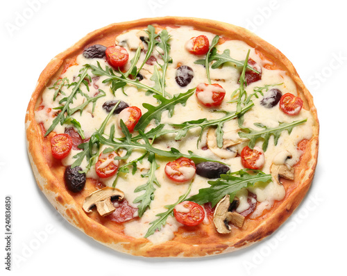 Delicious pizza on white background