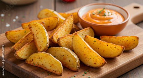 Delicious Potato Wedges Served with Creamy Sauce for a Tasty Snack