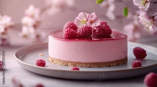 Delicious Raspberry Cheesecake with Spring Blossoms