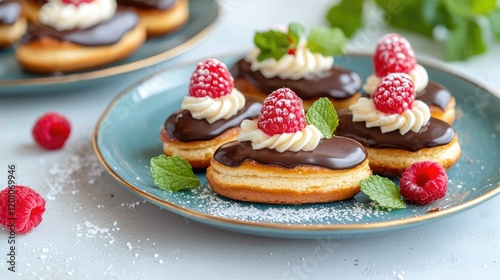 Delicious Raspberry Chocolate Cream Pastries on Plate