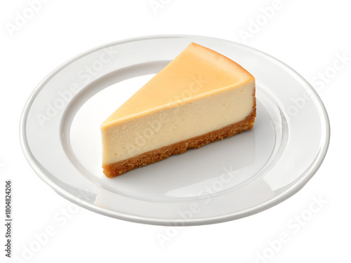 Delicious slice of cheesecake on a white plate isolated on transparent background