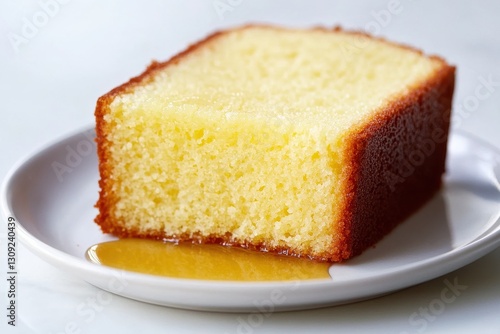 Delicious Slice of Freshly Baked Yellow Cake on White Plate