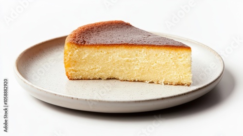 Delicious slice of homemade cheesecake on a ceramic plate