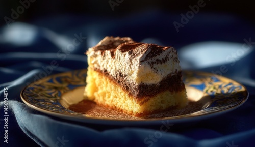 Delicious Slice of Tiramisu Cake on an Ornate Plate