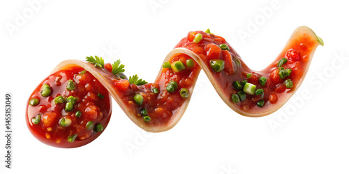 Delicious Spicy Tomato Salsa Swirled on Thinly Sliced Vegetable Garnish