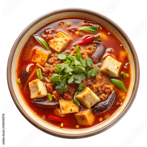 Delicious Szechuan Soup on White Backdrop