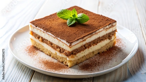 Delicious tiramisu dessert served on a white plate, tiramisu, dessert, Italian, sweet, creamy, coffee, cocoa