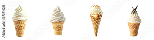 Delicious Vanilla Ice Cream Cones Collection Soft Serve and Scooped Ice Cream in Waffle Cones
