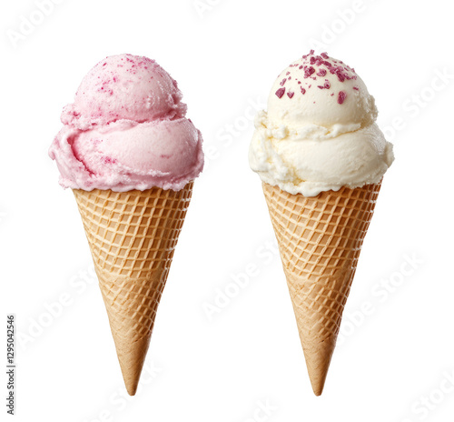 Delicious Waffle Cones with Chocolate Topping Isolated