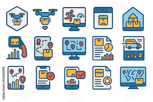 Delivery and logistics flat icon set. shipping, tracking essentials in flat style