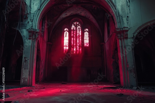 Demonic ritual in abandoned church, with copy space