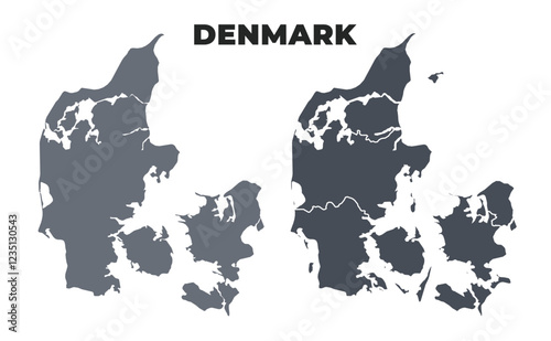 Denmark grey political map simple flat illustration set