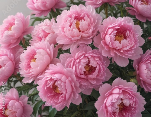 Dense cluster of pink peonies, soft background , wallpaper, bunch, macro