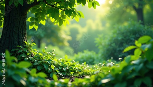 Dense foliage sways gently in the soft breeze, serenity, soft light