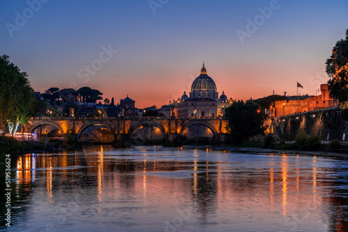 Der Petersdom in Rom bei Nacht mit dem Fluss TIber im Vordergrund