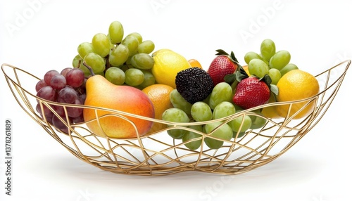 Designer fruit bowl showcasing colorful fruits modern home high-quality image minimalist style artistic viewpoint