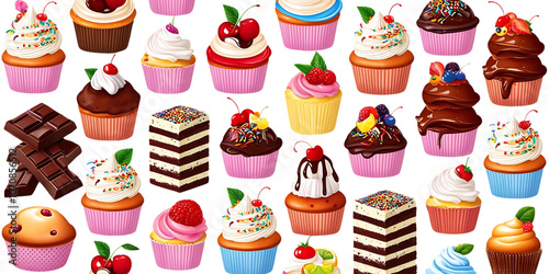 Dessert , cupcake, sweet baked pastry and pancakes,