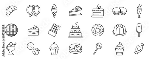 Dessert icons. Popular sweet dishes set. Vector illustration.
