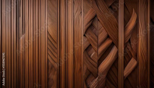 Detail of a wooden wall with a linear relief and texture