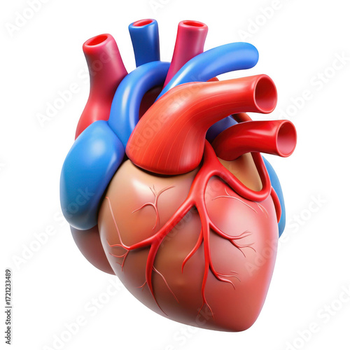 Detailed 3d human heart anatomy model showing arteries veins and chambers in realistic detail isolated on transparent background