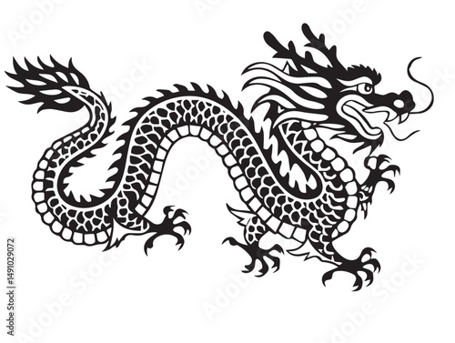 detailed dragon illustration, fantasy art, ornate dragon with intricate scales, flowing wings, sharp claws, dramatic pose, black and red, digital painting, concept art, mythological creature