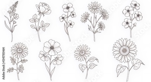 Detailed Flower Line Art Collection Featuring Various Botanical Illustrations