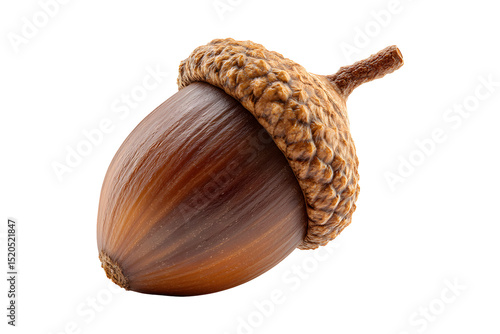 Detailed macro shot of a single acorn against a stark transparent background