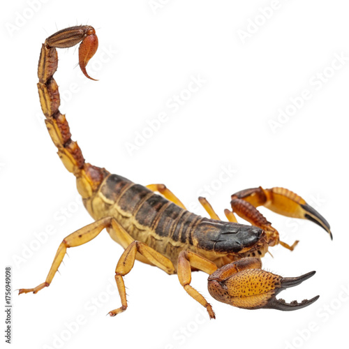 Detailed scorpion portrait with raised stinger evokes danger, perfect for nature documentaries, educational content, or Halloween themed designs