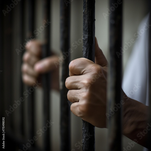 Detailed shot of a prisoner's hands holding onto prison bars