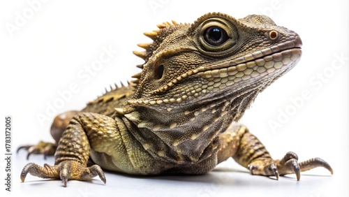 Detailed tuatara reptile isolated on white studio background