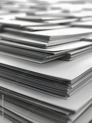 Detailed View of Multiple Paper Stacks Arranged in Pattern with Blurred Background