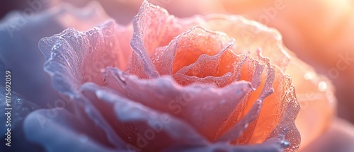 Dewy rose petals sunrise close-up, nature background, romantic